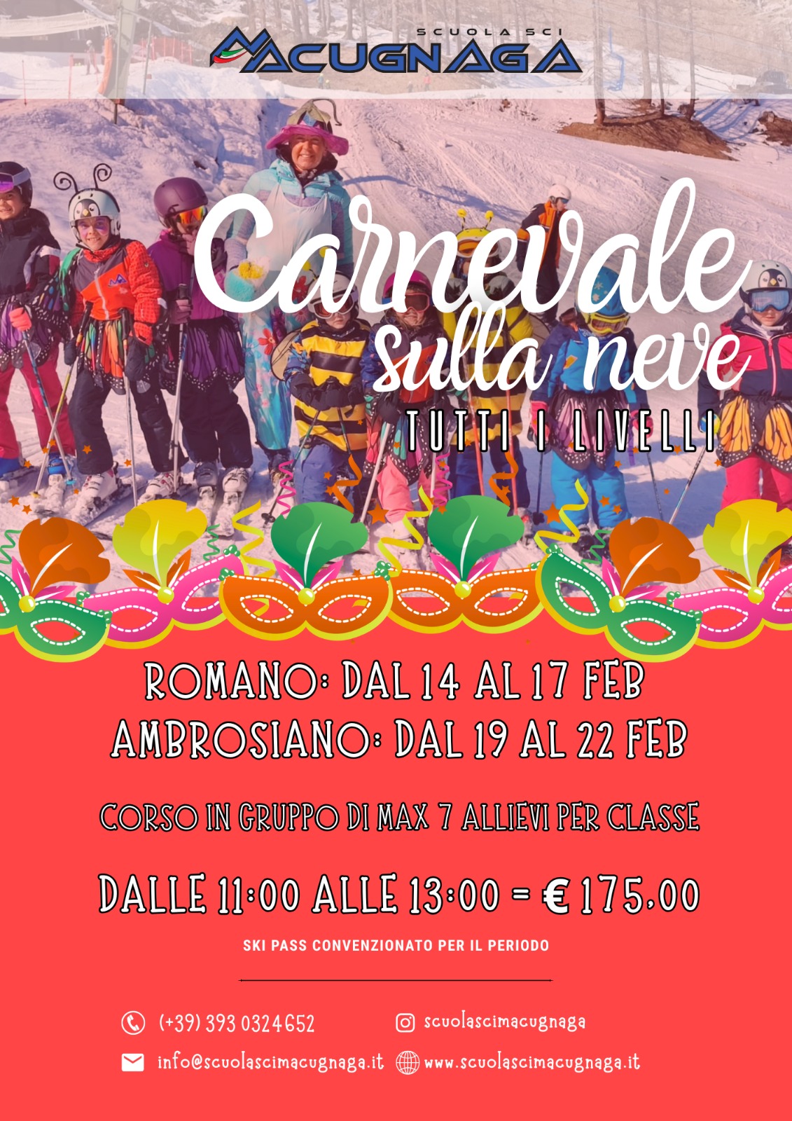 Vivi il Carnevale con la Scuola Sci Macugnaga!